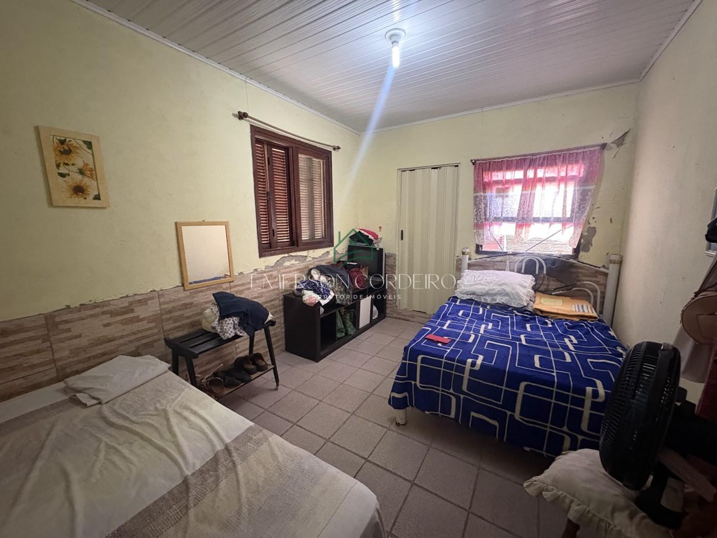 Dispondo de três dormitórios, sendo um suíte, banheiro social, sala de estar e cozinha ampla com churrasqueira, área de serviço, vaga de garagem coberta para dois veículos.